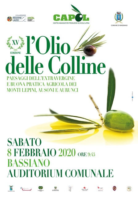 Il Concorso provinciale “L’Olio delle Colline, Paesaggi dell’extravergine e buona pratica agricola”, giunto quest’anno alla sua XV edizione, è organizzato dall’Associazione CAPOL – Centro Assaggiatori Produzione Olivicole Latina – con patrocini di: Regione Lazio, ARSIAL, Provincia di Latina, Comune di Bassiano, Camera di Commercio di Latina, UNAPROL – Consorzio Olivicolo Italiano, XIII Comunità Montana Monti Lepini Ausoni, Compagnia dei Lepini, Consorzio per lo Sviluppo Industriale “Roma-Latina”, Slow Food Latina, LILT Lega Italiana della Lotta contro i Tumori – Sezione di Latina, Proloco Bassiano.