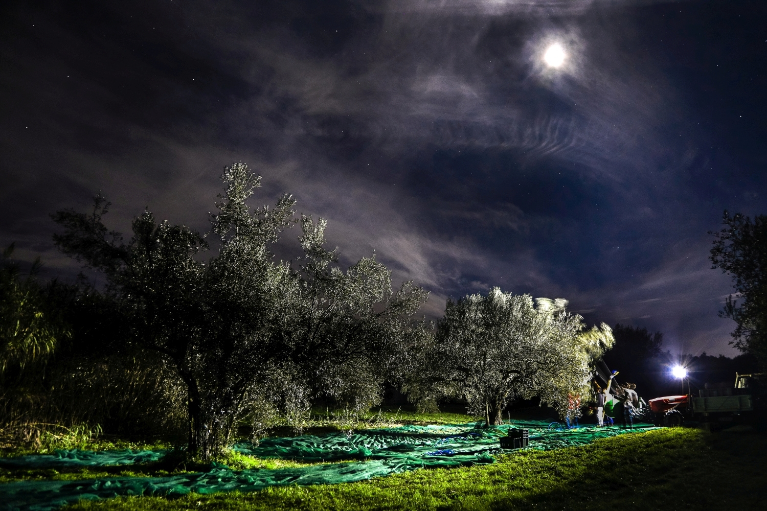 Perché raccogliendo le olive nelle ore notturne, in assenza di luce solare, non si attivano i processi di ossidazione, particolarmente dannosi per l’Olio Extravergine d’Oliva.